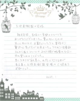新型コロナウイルス感染拡大の影響で、ステイホームや在宅ワークで出掛ける機会がなくなり、観光果樹園へ来園が難しくなったお客様に、ワケありではありますが、定期的に様々な種類の「旬の果物」が届くことで「あたかも果樹園で好きな果物をたくさん摘むような体験」・「山形の親戚の農家から、新鮮な果物が季節ごとに届くような体験」を提供し、同時に出荷の際に出てしまうワケありの果物をお届けすることで、果物の廃棄処分を減らすなどのフードロス問題の解消にも貢献し、さらに当社を含む山形県内の農業を応援する仕組みを構築しました。