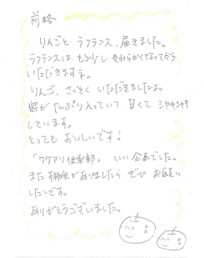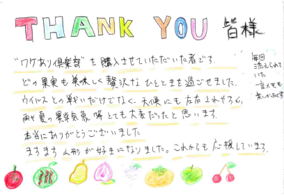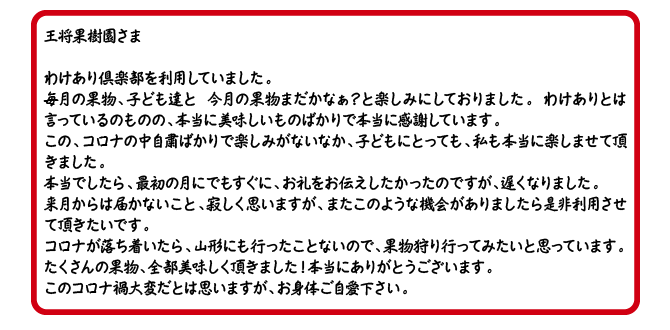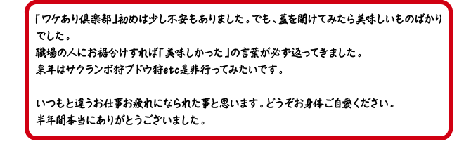 「ワケあり倶楽部」をご注文いただいたお客様からは、