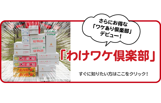 「ワケあり倶楽部」は、定額で色々なワケありくだものを「一番おいしい時期に」食べられる、山形発のフルーツ頒布会です。