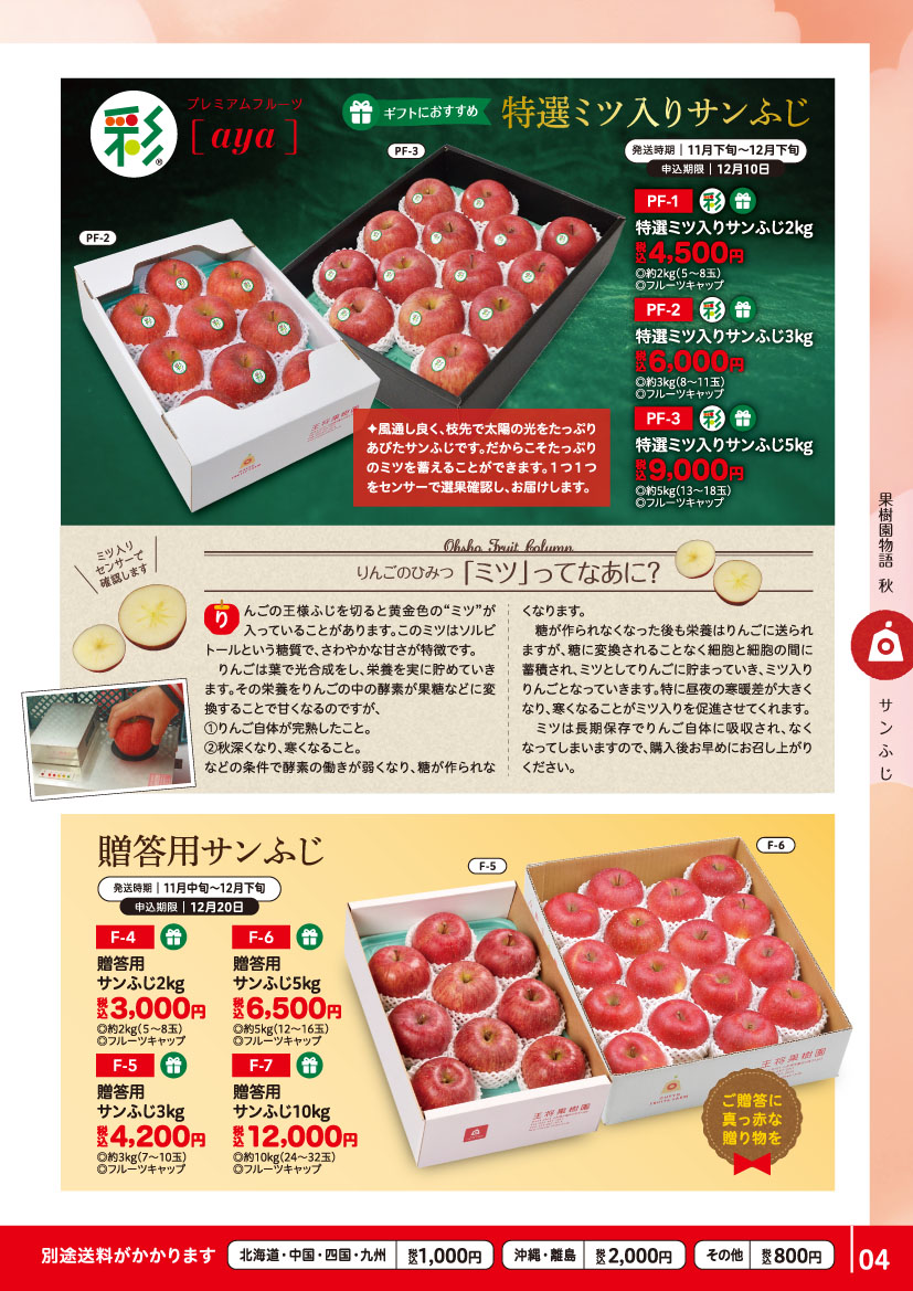 プレミアムフルーツ彩 特選ミツ入りサンふじ、贈答用サンふじ(4P)