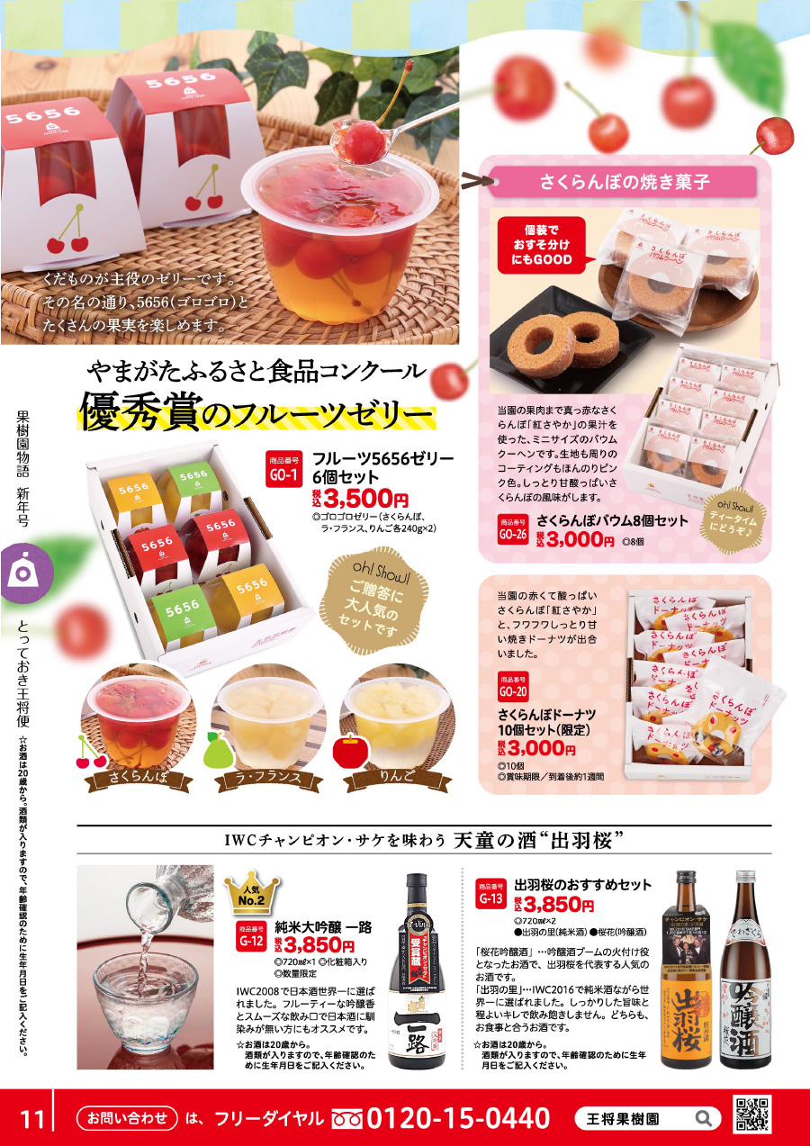 フルーツ5656ゼリー、さくらんぼドーナツ、さくらんぼバウム、山形の地酒
