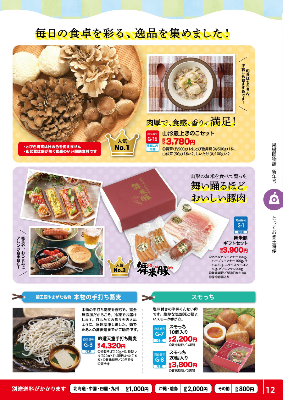 山形最上きのこ、山形の地酒、手打ちそば、生ラーメンセット、スモッち、舞米豚ギフトセット