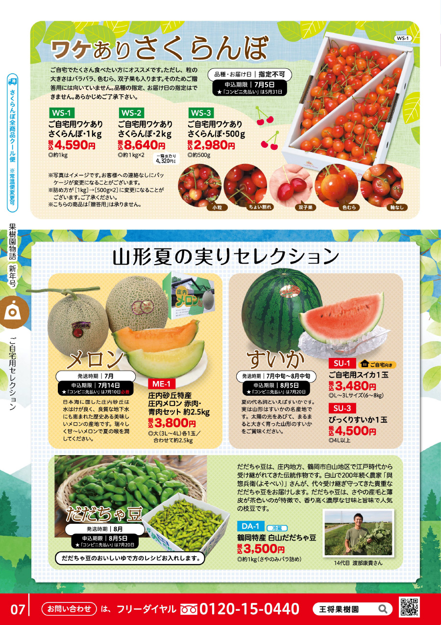 ワケありさくらんぼ・庄内メロン・すいか・だだちゃ豆