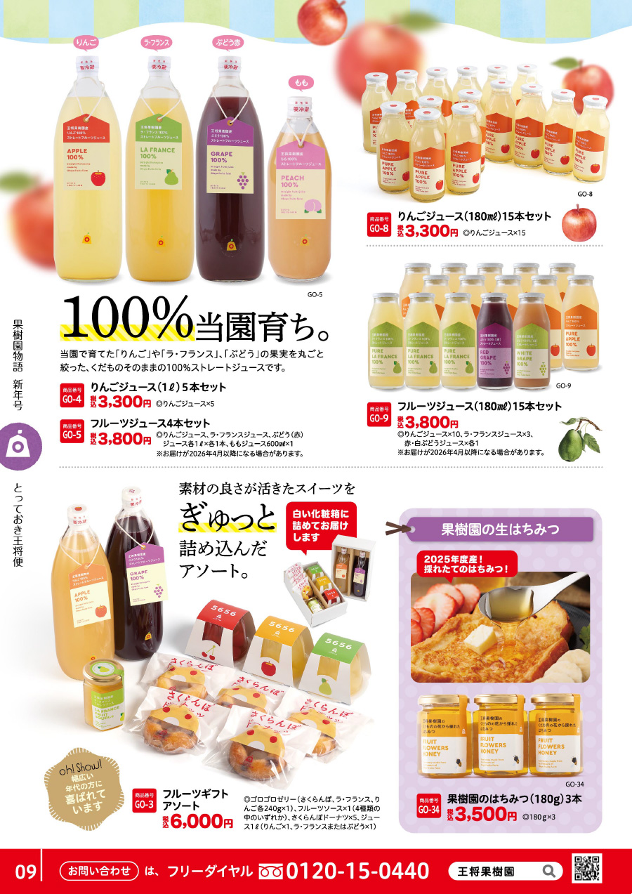フルーツジュース、フルーツソース、はちみつ、フルーツギフトアソート
