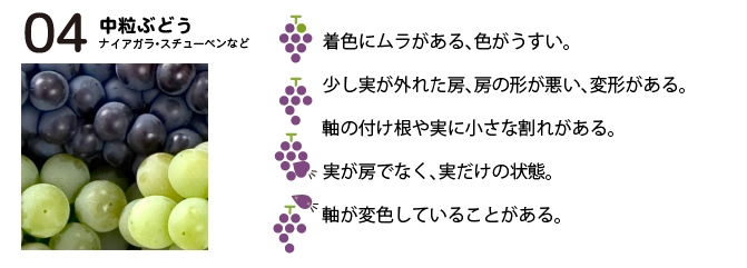 大きいスイカは、食べやすく冷蔵庫でも保管しやすいメロンに変わります。ぶどうは大粒から中粒に変わります。